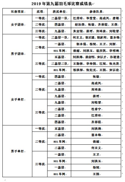 通过本次羽毛球比赛,队员们以球会友,不仅增进了彼此间的友谊、加强了相互间的交流,也在工作之余放松了心情,增加了工作的激情。队员们在比赛中不仅赛出了风格、赛出了水平,更展现出了太阳网集团tcy8722人不屈不挠、团结奋进的精气神。希望大家在今后的工作中充分发挥这种昂扬向上的奋斗精神,再接再厉,携手共创太阳网集团tcy8722的美好明天!